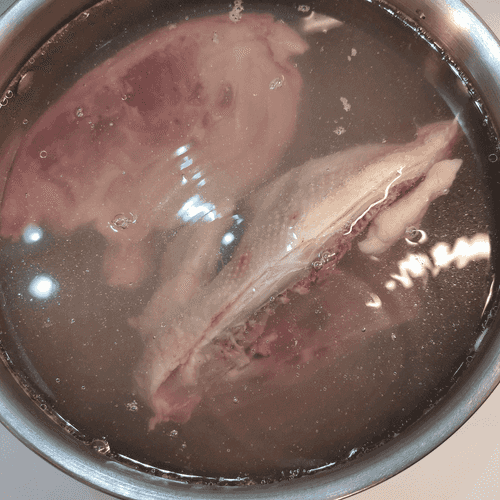 Pour drinking water (enough to completely cover the bird) and place it on high heat.