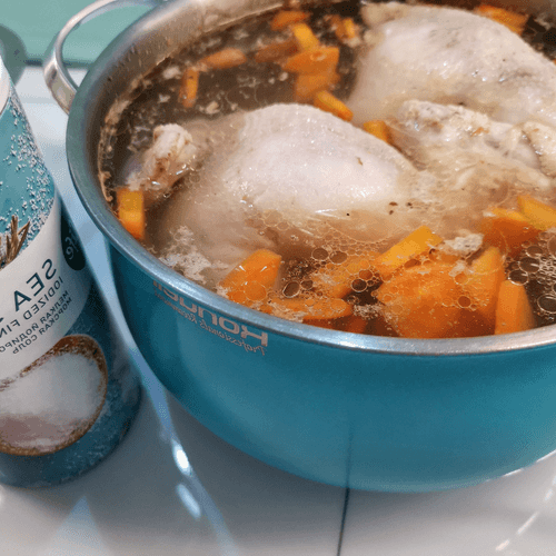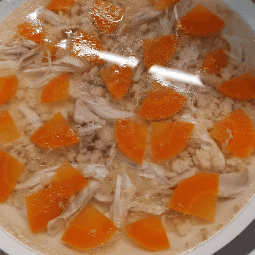 Slice the carrot into thin slices and add to the broth 5 minutes after boiling.