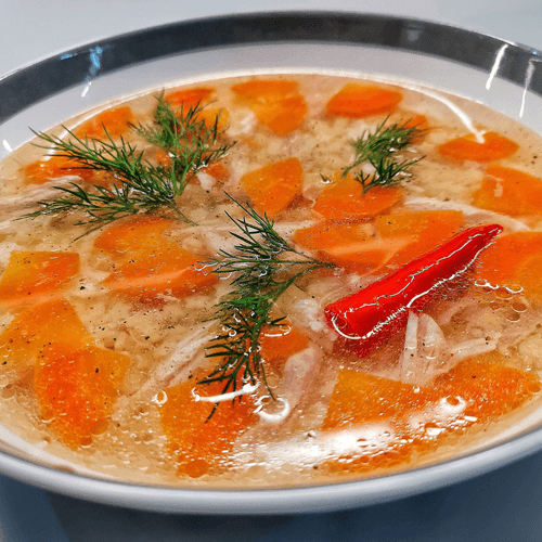 Итальянский бульон из цыпленка — это воплощение уютной и домашней итальянской кухни. Его история уходит корнями в традиционные рецепты, которые веками готовились в итальянских семьях. Прозрачный, ароматный бульон с нежным цыпленком и тонкими ломтиками моркови дарит гармонию вкуса и согревающее ощущение уюта. Пикантность добавляет острый перец, а паста стеллине делает блюдо сытным и насыщенным. Этот суп идеально подходит для неспешного обеда или уютного ужина, особенно в прохладное время года. Он подается с ароматной зеленью, которая придает свежесть и завершенность вкусовой палитре. Итальянский бульон из цыпленка — это не просто суп, а настоящая гастрономическая традиция, наполненная теплом и заботой.