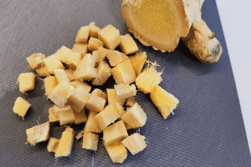 Cut the ginger into cubes.