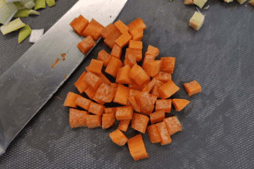 Cut the carrot into cubes.