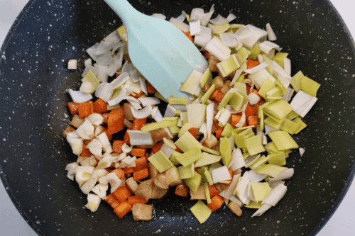 After 3-4 minutes, add garlic and leek. Sauté for 10 minutes over medium heat, stirring occasionally.