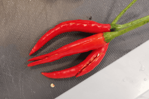 Make cuts in the chili pepper. Removing the seeds is not necessary; they will add more heat.