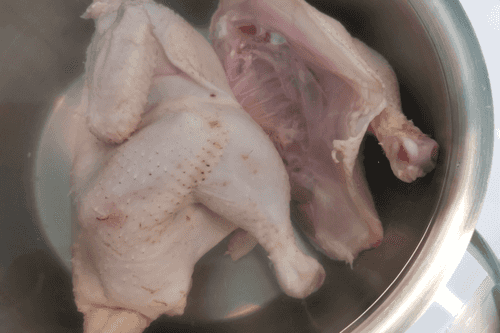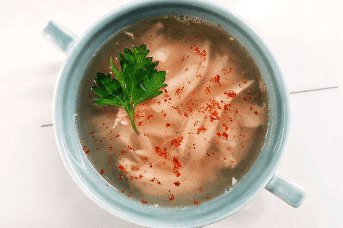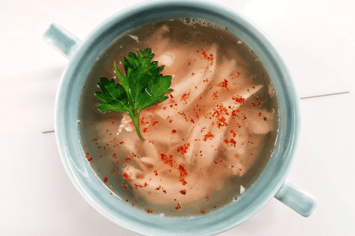 Transfer the chicken to a deep dish. Add the strained broth and serve. You can season with chili flakes to taste.