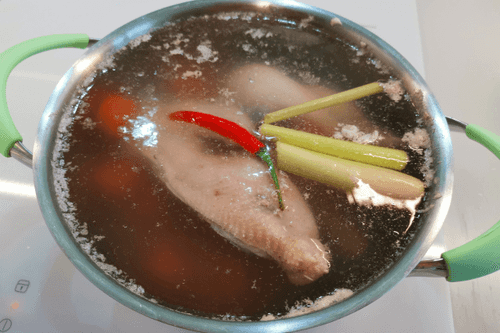 Паназиатский куриный бульон — это ароматное блюдо, объединяющее традиции восточной кухни. Его нежный вкус раскрывается благодаря гармоничному сочетанию куриного мяса, сладковатой моркови и экзотического лемонграсса. Остроту и глубину придаёт перец чили, а пряные нотки — душистый черный перец. Этот бульон согревает и пробуждает вкус, оставляя легкое цитрусовое послевкусие. Истоки рецепта уходят в паназиатскую гастрономию, где свежесть ингредиентов и баланс ароматов занимают центральное место. Бульон можно подавать как самостоятельное блюдо или использовать в качестве основы для супов и лапши. Он отлично подходит для легкого ужина или согревающего перекуса в прохладный день. Насыщенный, питательный и пряный — это настоящее воплощение комфорта в чаше.