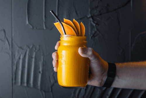 Serve the smoothie in a large glass, garnished with remaining pumpkin slices.