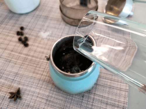 Once the coffee pot starts making the characteristic boiling sound, remove it from the heat and let it steep for 2-3 minutes.