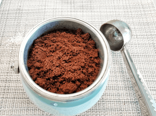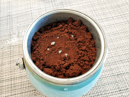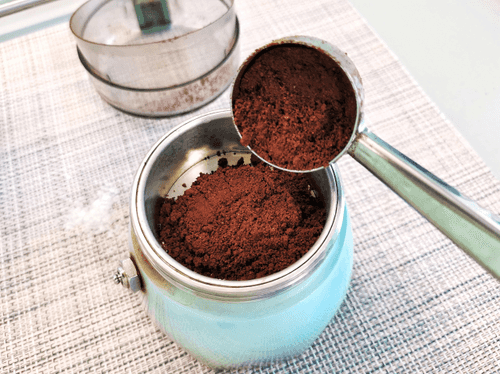 Pour coffee powder into the coffee pot, but do not tamp it down.