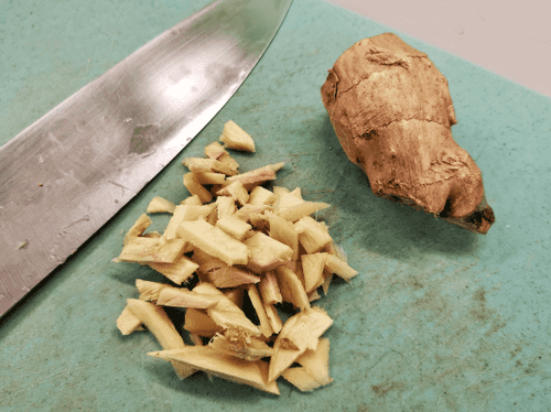 Clean and slice the ginger.