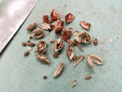 Separate the seeds and husk of cardamom and anise.