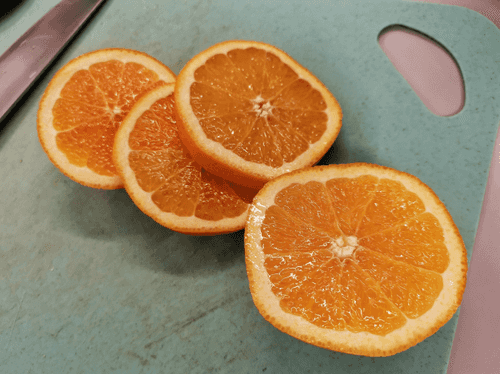 Slice the orange into rings.