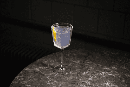 Add ice to the glass, a slice of lemon peel, and pour in the cocktail.