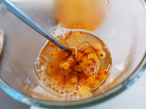Citrus juice with sea buckthorn is a vibrant drink filled with sunny warmth and freshness. Sea buckthorn, known for its healing properties, adds a pleasant tartness to the juice, while honey contributes natural sweetness and smoothness of flavor. Lemon and orange bring citrus freshness, creating a perfect balance between acidity and sweetness. This drink not only invigorates but also strengthens the immune system due to its high vitamin concentration. It is great for morning awakenings or cozy evenings and serves as a healthy addition to a balanced diet. Its rich flavor is best revealed when chilled, and the slight bitterness of sea buckthorn makes it truly unique.
