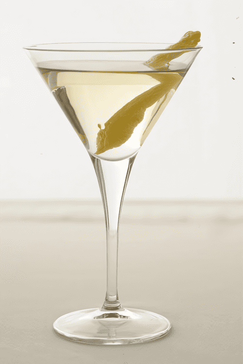 Cut the zest from the lemon. Spray the surface of the cocktail with essential oils of the zest. Immerse the peel in the glass.
