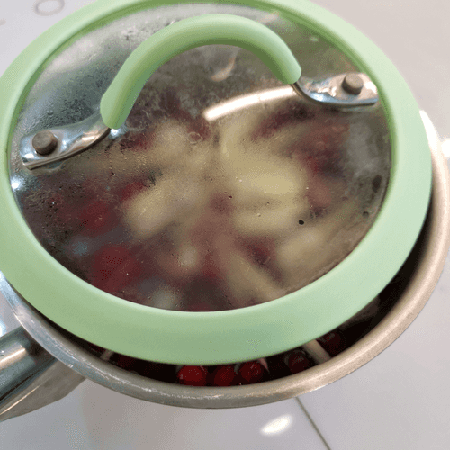 Put the cranberries in the pot.