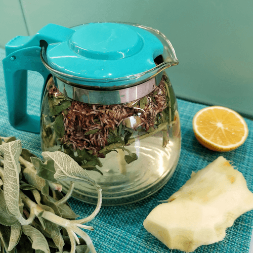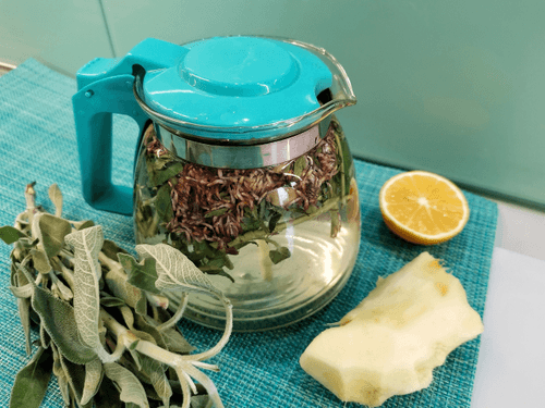 Chop the sage and put it in the teapot.