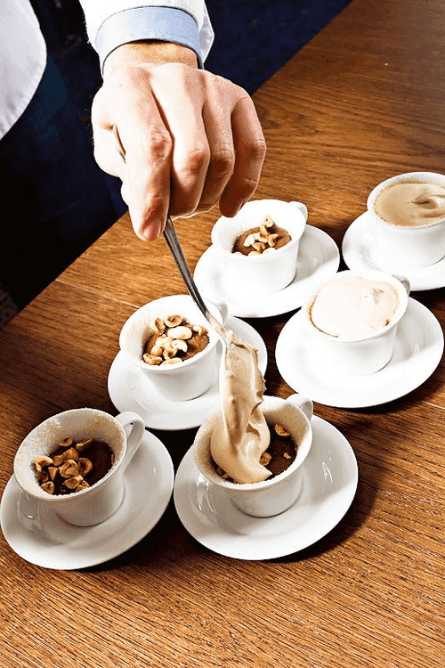This cream should be poured into the remaining half of the coffee cup and served immediately. The chantilly cream must be very cold, while the chocolate should be hot, so that even the most inattentive person notices that almost half of the intrigue in this dessert lies in the play of temperatures.