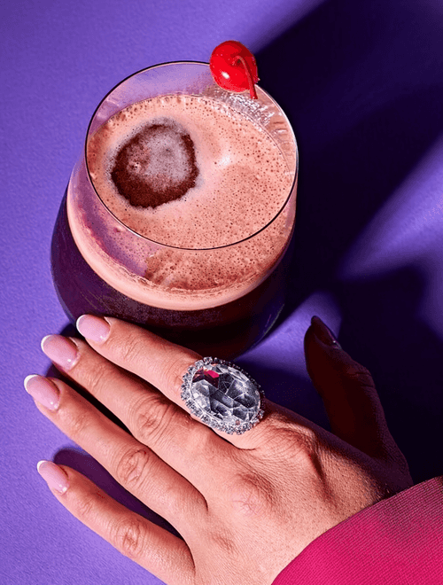 Pour cherry juice into the glass.