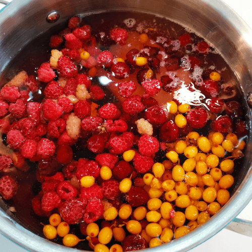Berry mors is a fragrant and refreshing drink from Russian cuisine that combines the sweet-and-sour notes of forest berries. Its history traces back to the traditions of old Russian estates where mors was served as a tonic drink. Blackcurrant adds a slight tartness, raspberry brings sweetness, sea buckthorn offers a delicate sourness, and cherry fills it with a rich flavor. This drink not only delights the taste buds but is also a true treasure trove of vitamins that strengthen the immune system. It refreshes wonderfully in the heat and warms and energizes during cold weather. Mors can be served as an independent drink or paired with baked goods to create a cozy atmosphere for family gatherings.