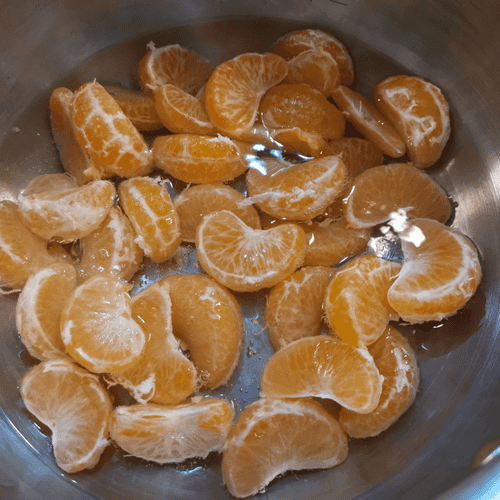 Peel the mandarins and separate them into segments.