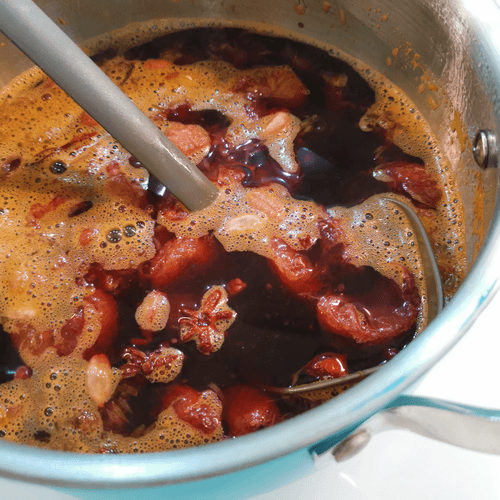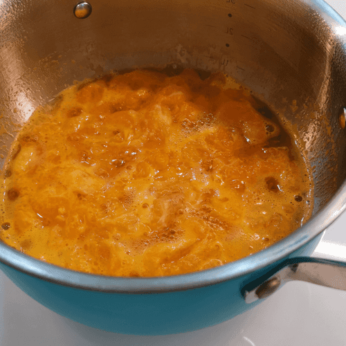 Bring to a boil and reduce the heat to medium. Gently mash the slices with a ladle.