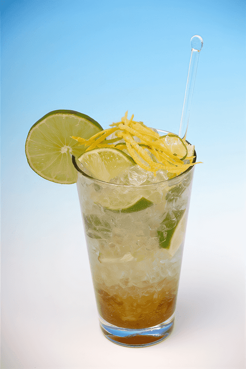 Peel the limes. Slice the ginger (3 cm) and limes into thin slices. Place them in a bowl and mix with sugar and 30 mint leaves. Muddle the mixture. Transfer the mixture to a large pitcher, pour in the cachaça, cover, and refrigerate.