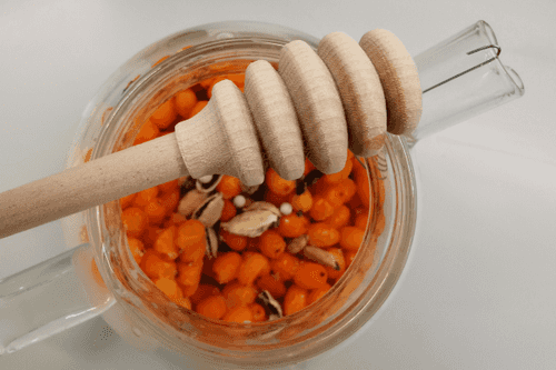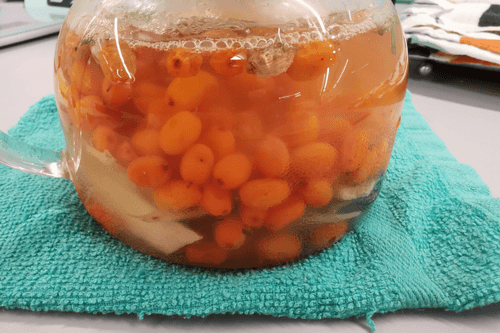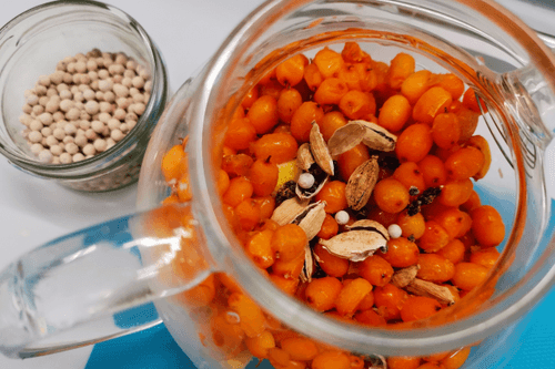 Sea buckthorn lemonade is a fragrant and warming drink that combines the sour-sweet freshness of sea buckthorn, the spicy sharpness of ginger, and the exquisite aroma of mint and cardamom. This drink has roots in Russian cuisine, where sea buckthorn has long been used in folk medicine for its beneficial properties. The taste of the lemonade is bright and rich: sea buckthorn gives it astringency, mint adds freshness, and honey softens the spicy notes of white pepper and cardamom. This lemonade is perfect for autumn-winter evenings when you want to warm up, boost your immunity, and enjoy a rich bouquet of flavor nuances. It can be served warm or chilled, making it a versatile drink for any season.