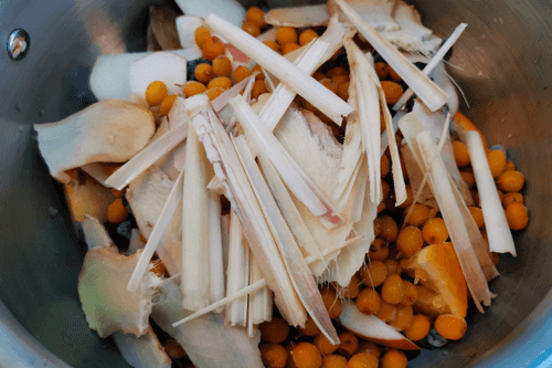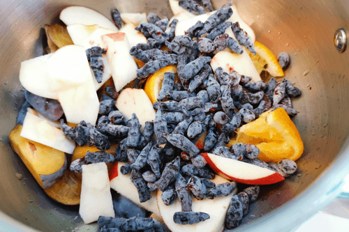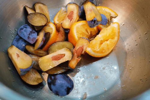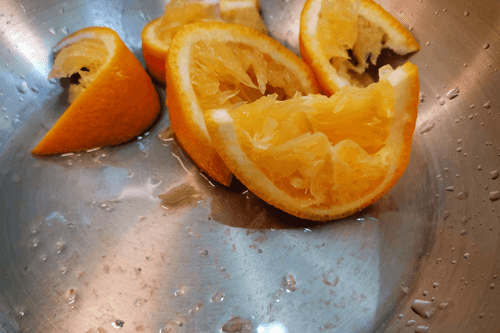 Cut the orange, squeeze some juice from the segments, and place it in a pot.