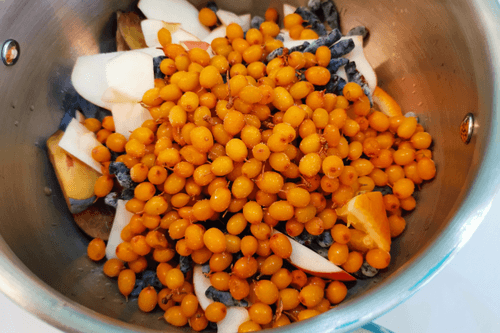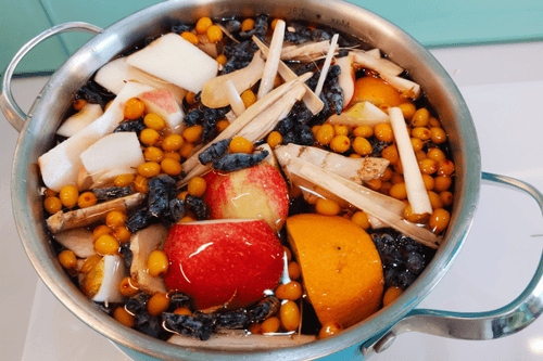 Plum compote with ginger is a drink that combines the warmth and freshness of fruits with the spicy notes of ginger root. Its origin is linked to culinary experiments where natural ingredients complement each other to create a multifaceted flavor. The sweetness of plums and apples harmonizes with the tart notes of honeysuckle and sea buckthorn, while ginger adds a slight spiciness and warming effect. Lemongrass adds subtle citrus accents. This compote can be served hot or chilled, allowing you to enjoy its vibrant aroma and refreshing taste. Ideal for cozy evenings and festive gatherings, it not only quenches thirst but also positively impacts the body by boosting immunity and improving digestion.