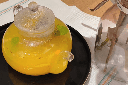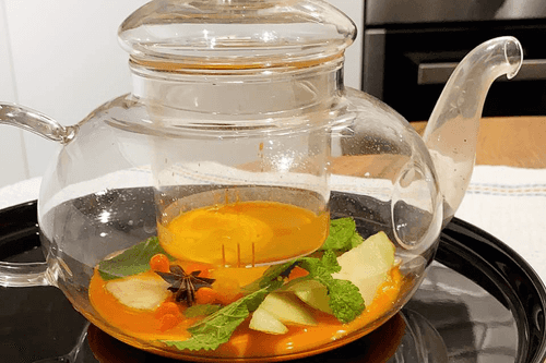 Combine pear-sea buckthorn puree in a teapot, add cinnamon and sage.