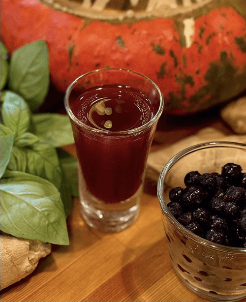 Recipe from Eduard Pînzaru, head bartender at Lark Café. The tincture has a rich, deep color. It tastes bright and multifaceted, the sweetness and berries harmoniously combine with ginger spicy notes and herbal notes of fresh basil, leaving a long aftertaste. Instead of fresh currants, you can use frozen ones.