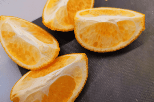 Cut the orange into 4 pieces.