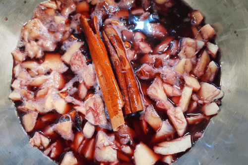 Once the wine starts to boil, reduce the heat and add cinnamon.