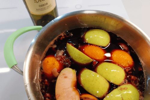 Mulled wine with apples and oranges