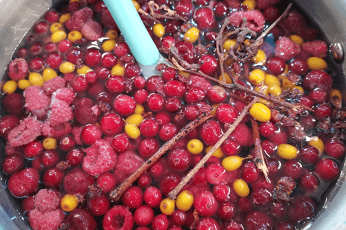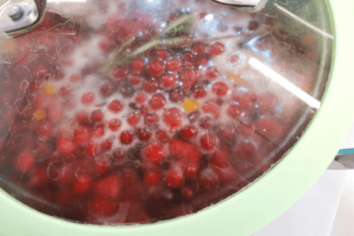 Pour the cranberries into a deep pot.
