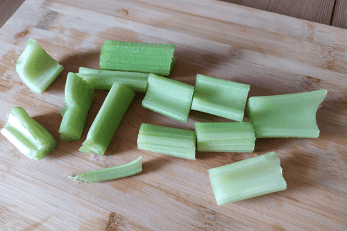 Cut the celery stalks randomly.