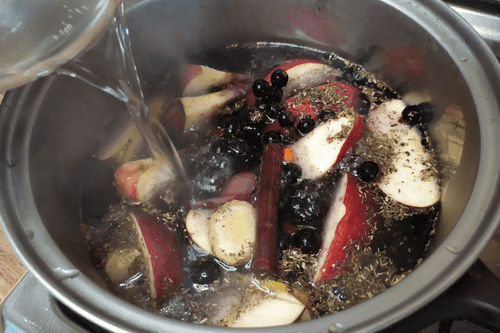 Apple sbiten with black currant is a fragrant hot drink rooted in ancient Russian traditions of warming infusions. Its deep fruity flavor, complemented by spicy ginger, cloves, and cinnamon, envelops you in coziness and warmth. Black currant adds a slight tartness while mint brings fresh notes. Honey softens the rich flavors, creating a balance between sweetness and spices. This sbiten not only warms in cold weather but also boosts immunity thanks to its natural ingredients. It can be served as a cozy evening drink or as part of traditional Russian feasts. The deep, rich, and slightly tart taste of this sbiten is a true delight for lovers of hot fruit infusions.