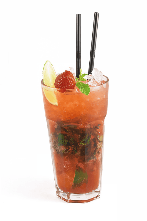 Strawberry mojito is a refreshing cocktail that combines the brightness of fresh strawberries, the coolness of mint, and the richness of rum. This drink is inspired by the classic mojito but gains a unique fruity note from strawberry liqueur. The cocktail's taste balances between the sweetness of strawberries, the slight tartness of lemon juice, and the refreshing aroma of mint. It is perfect for summer evenings, friendly gatherings, and festive celebrations. The uniqueness of this drink lies in its ability to quench thirst while providing a sense of freshness and lightness. The harmonious combination of ingredients makes it a popular choice among those seeking new interpretations of classic cocktails. Garnished with pieces of strawberry and a sprig of mint, it looks aesthetically pleasing and awakens the desire to savor every sip.