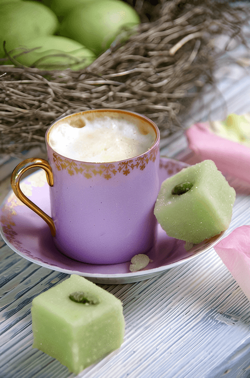 Remove from heat, add milk, and immediately pour into cups, adding half a baked apple to each.