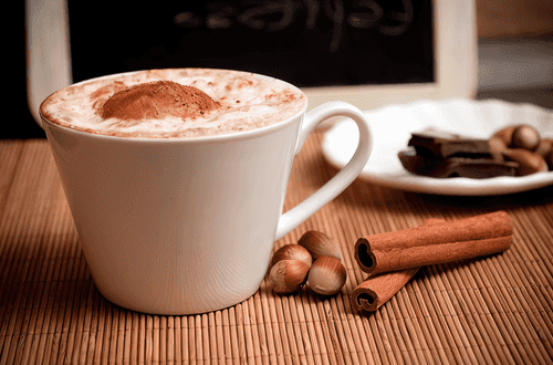 Brew hot coffee and mix it with warm liqueur. Pour into cups, decorate with cream, and sprinkle with cinnamon.