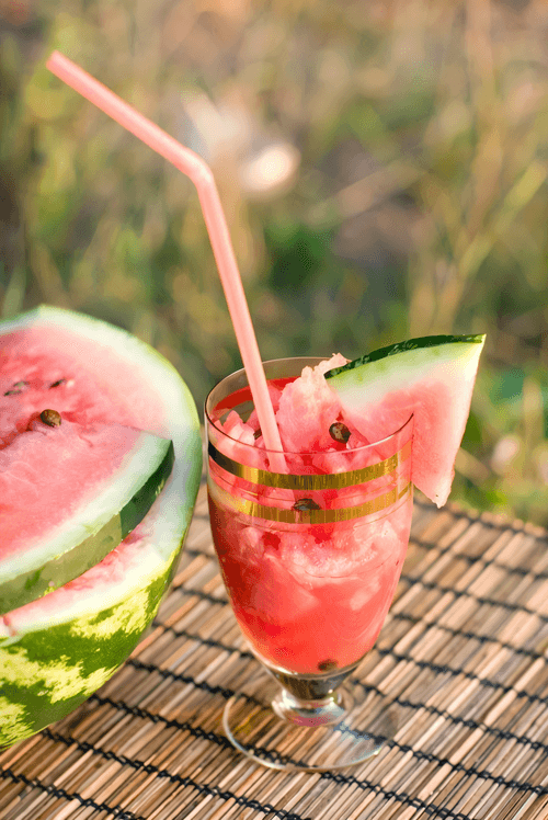 Blend the watermelon flesh in a blender until smooth. Strain through a sieve into a pitcher.