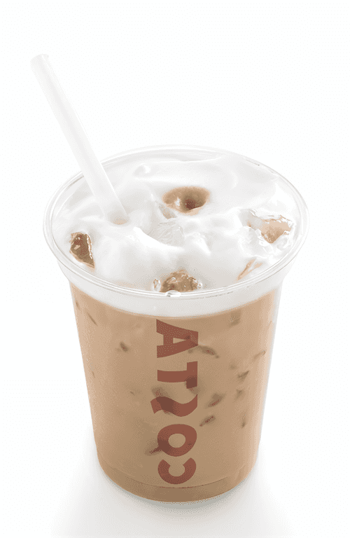 Pour cold milk into the glass over the ice and syrup, leaving at least 2 cm from the edge for the necessary amount of espresso and 1 cm of foam.