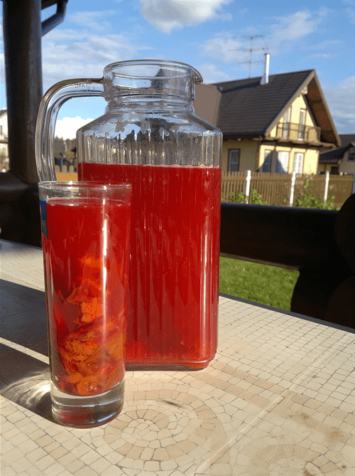 Plum juice is a refreshing drink with a rich fruity flavor and a slight tartness. Its roots trace back to ancient European traditions of making fruit beverages that have served for centuries as a natural way to quench thirst and nourish the body with vitamins. The uniqueness of the juice lies in its natural simplicity: fresh plums give it a bright, rich taste, while sugar allows for adjusting sweetness to preference. The drink cools perfectly in the refrigerator, acquiring a pleasant chill that makes it indispensable on hot days. Plum juice can be served as a standalone refreshing drink or used in cocktails, combining it with citrus notes and herbal additions. It’s a true find for lovers of natural flavors and the benefits of fresh fruits.