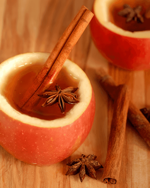 Mix apple juice with cinnamon syrup (or 1/4 tsp ground cinnamon) and heat it up.