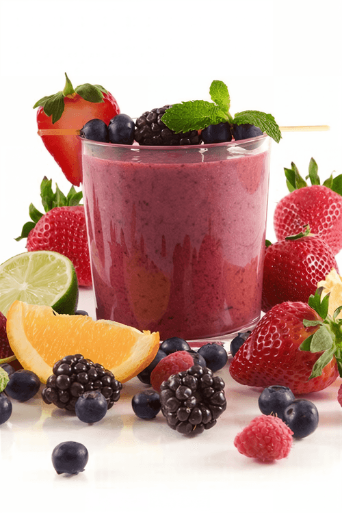 The 'Vitamin Charge' cocktail is a bright burst of freshness and benefits in one glass. Inspired by European culinary traditions, this drink combines the richness of berry flavors with the softness of banana. The history of such vitamin smoothies traces back to the healthy eating trend where natural ingredients play a key role. Strawberries and blackberries blended create a rich texture, while orange and pomegranate juices add a refreshing sweet-sour note. Thanks to its composition, the cocktail not only quenches thirst but also saturates the body with vitamins, making it an ideal choice for breakfast or a snack. It refreshes wonderfully, provides energy, and is perfect for summer days. Enjoy this wonderful mix of nature in every sip!