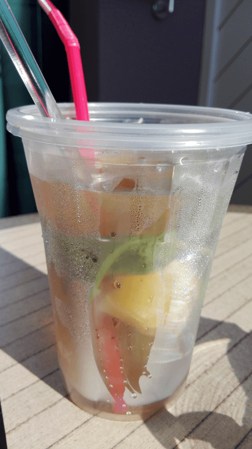 Mix everything and crush the mint leaves a little.