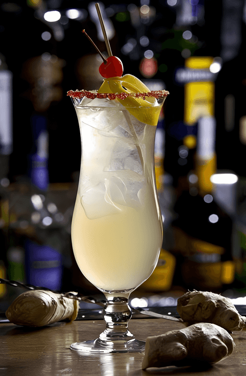 Pineapple-ginger cocktail is a refreshing and exotic blend from Pan-Asian cuisine, where the balance of flavors and aromas is valued. The sweetness of pineapple juice intertwines with the spicy warmth of candied ginger, creating a rich yet harmonious bouquet. This drink not only invigorates but also warms with its subtle spicy aftertaste. The light carbonation of soda water adds airiness, making the cocktail an ideal choice for hot days and evenings. In Asia, ginger has long been considered a source of life energy, while pineapple symbolizes hospitality. This cocktail will be a wonderful complement to Pan-Asian dishes and a refreshing accent on festive tables. It is best served chilled with ice cubes and garnished with thin slices of pineapple or ginger.
