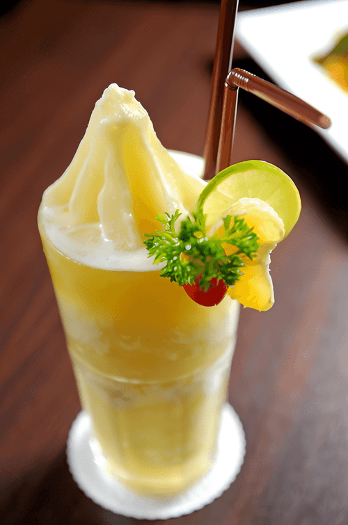 Mango smoothie with yogurt and sorbet is a true delight inspired by Chinese cuisine. Mango, one of the main ingredients, has long been used in East Asian culinary traditions for its sweet and refreshing taste. This smoothie combines the velvety texture of yogurt with the fruity freshness of mango and bright citrus notes from orange juice and pomelo water. Sorbet adds a gentle sweetness and cooling effect, making the drink perfect for hot days. With its lightness and rich flavor, the smoothie is great as a morning boost or a refreshing dessert after lunch. It can be garnished with pieces of fresh mango or mint leaves to add even more aroma and aesthetic pleasure.