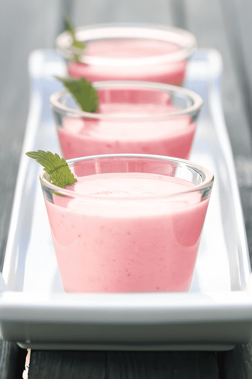 Blend berries, yogurt, orange juice, dry milk, honey, and vanilla in a blender.