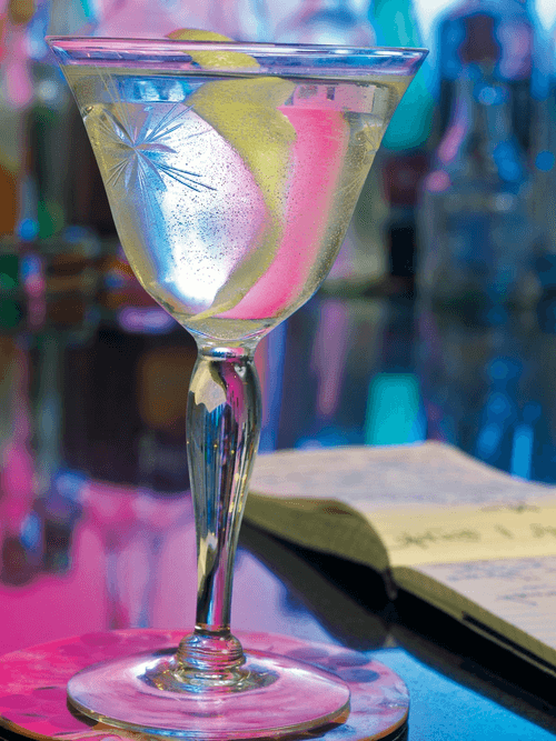 Cut a long strip of peel from half a lemon, cut a strip about a centimeter wide from it, and spray the cocktail with the zest juice — just twist it a little. The resulting curl can be used as a decoration.